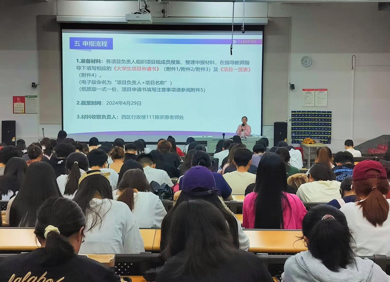 本次动员大会的成功举办,体现出我院对学生创新创业意识培养的重视,在促进我院学生对大创项目的深入了解的同时,呼吁学生注重积累相关赛事经验、提升自身的创业能力,进一步增强了学生参与创新创业项目的积极性,推动我院朝着培养具有创新意识和创业能力的应用型人才发展方向迈进。(谢佩玲/摄)