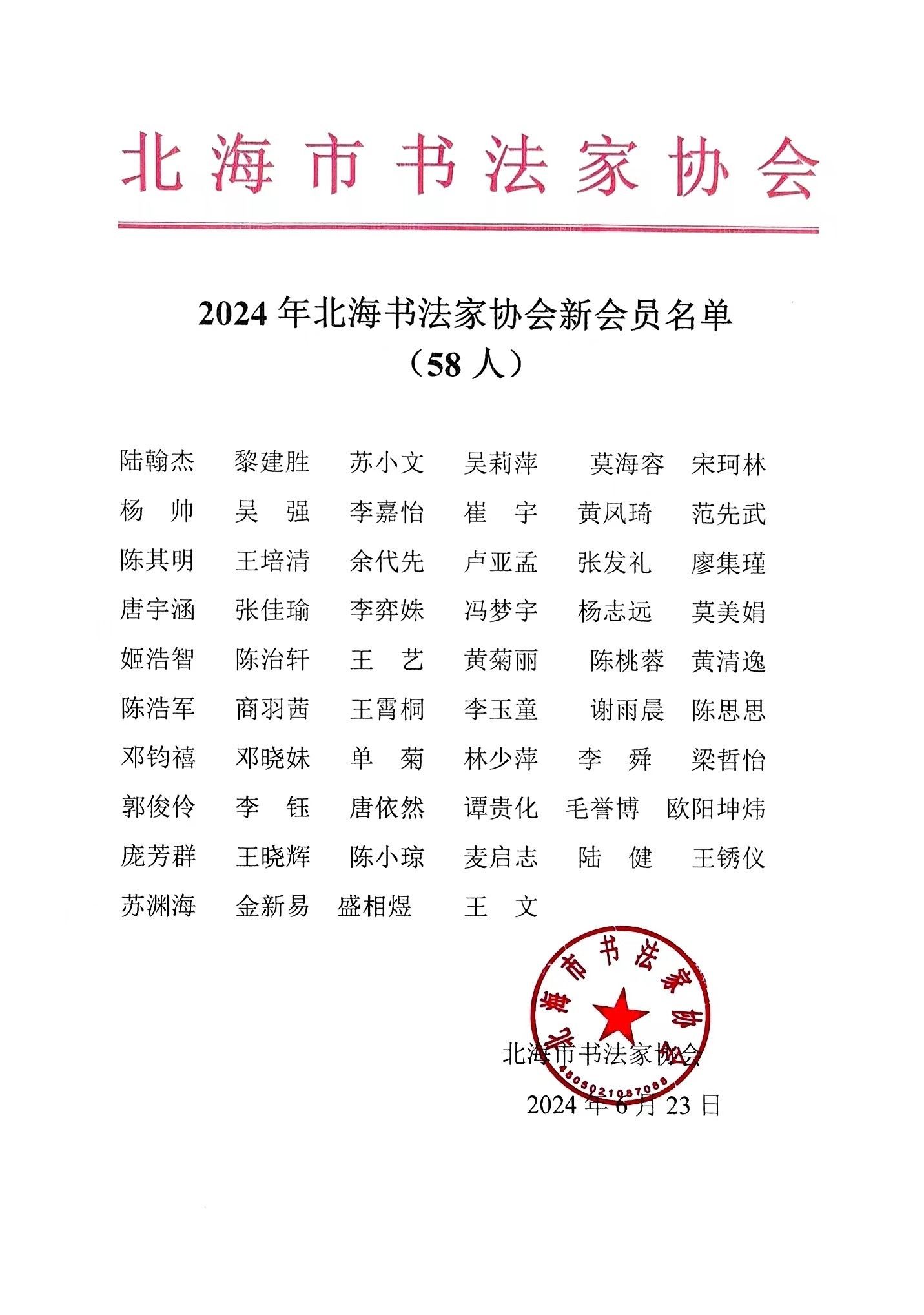 书法学院加入北海市书法家协会名单:(排名不分先后)