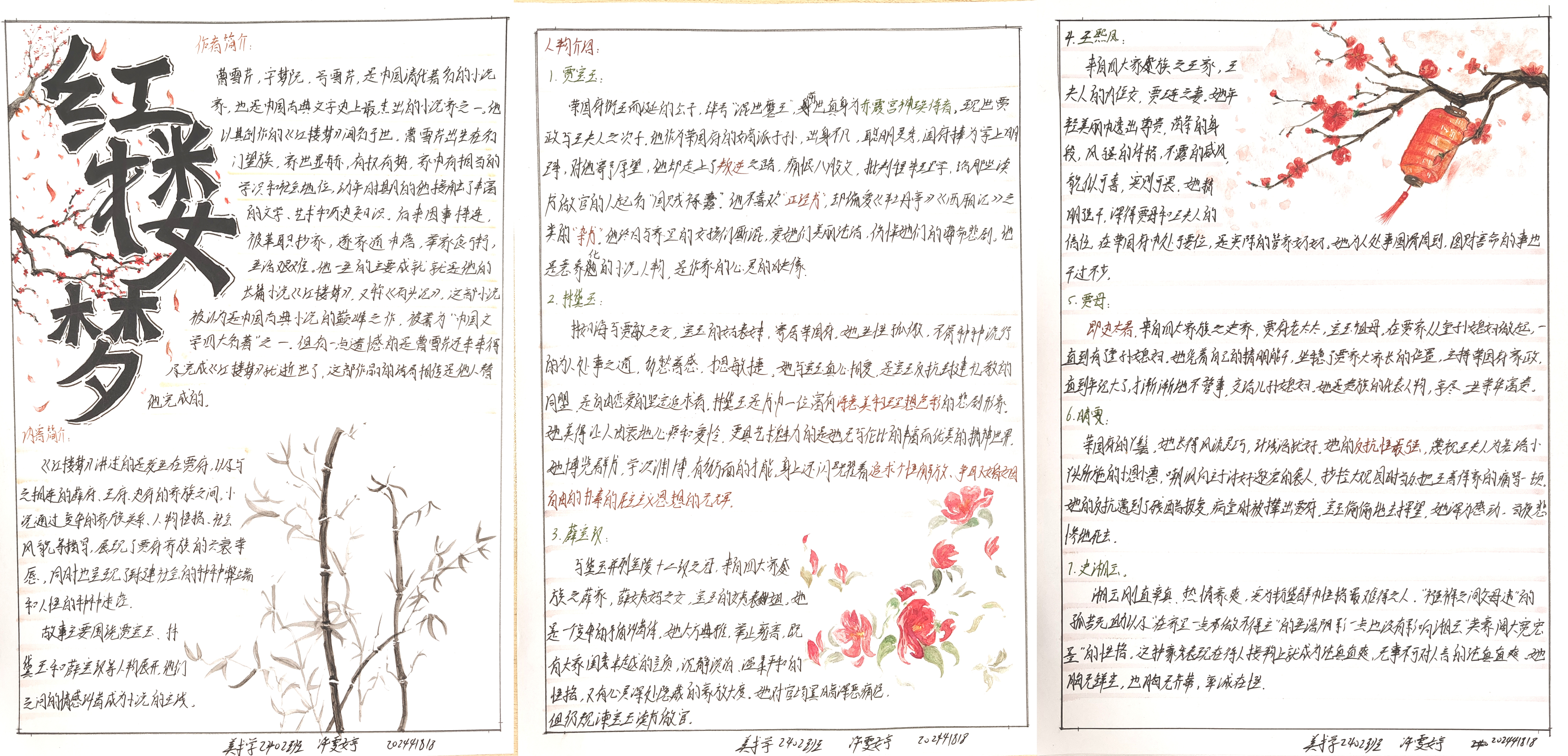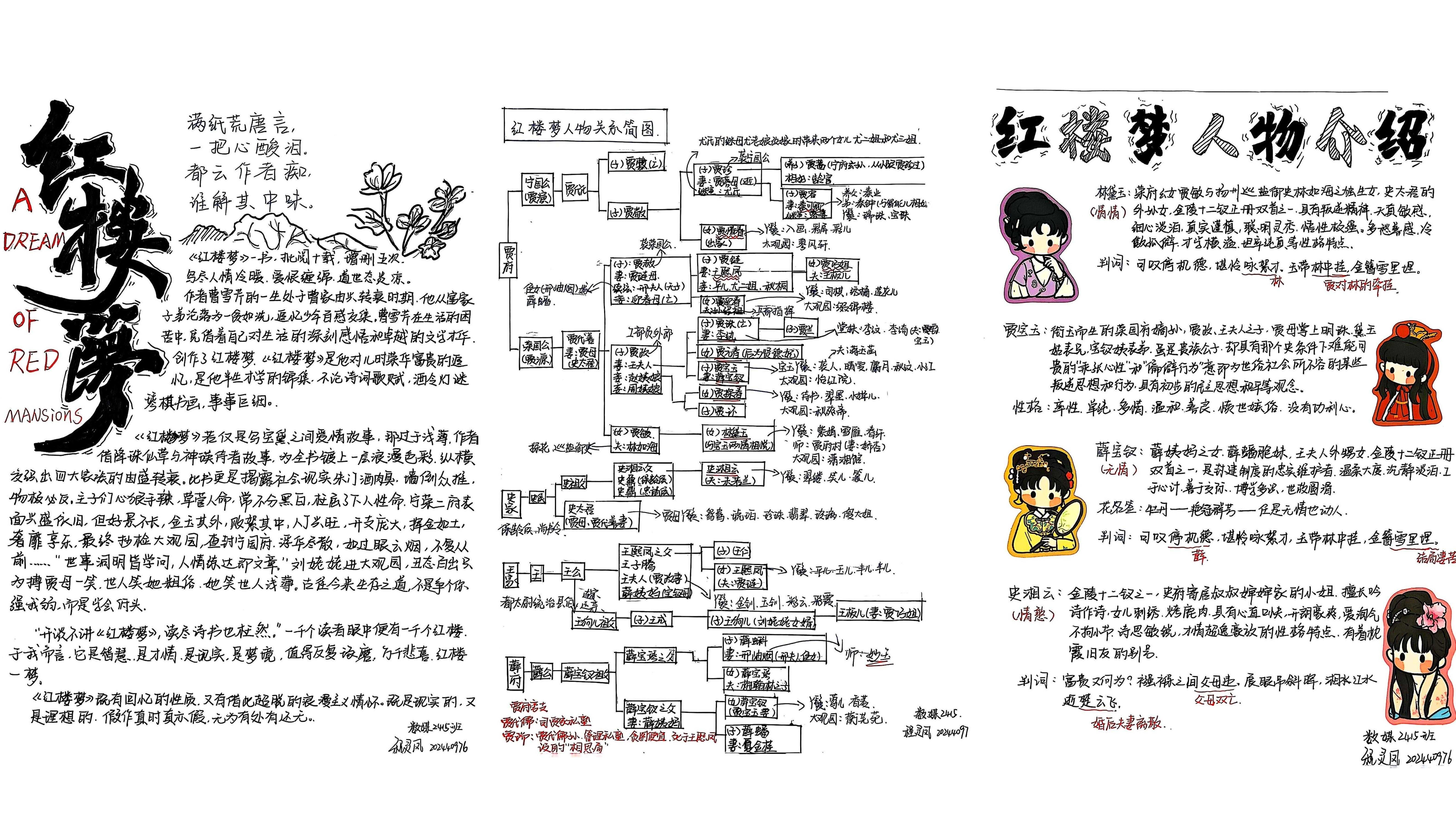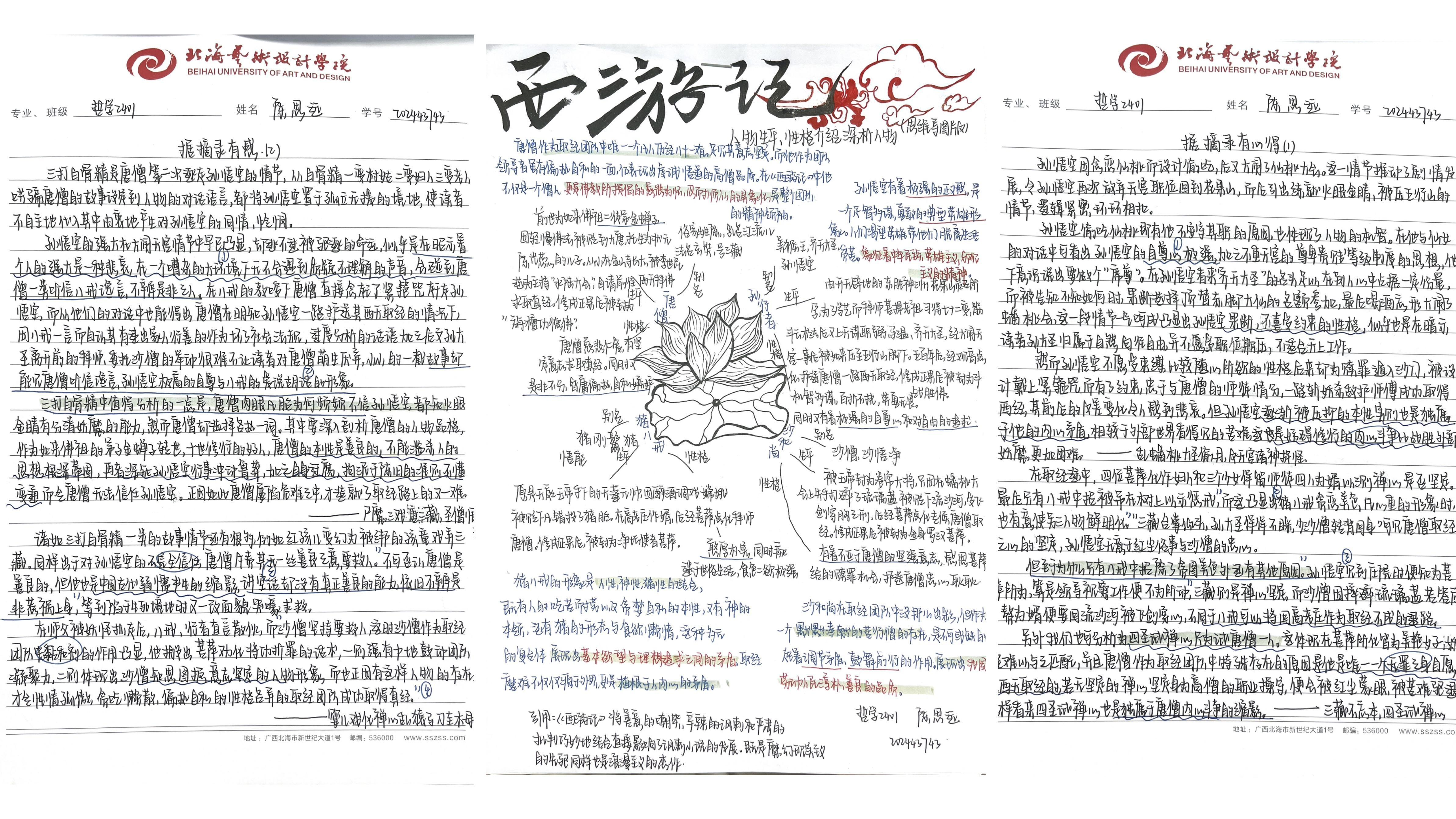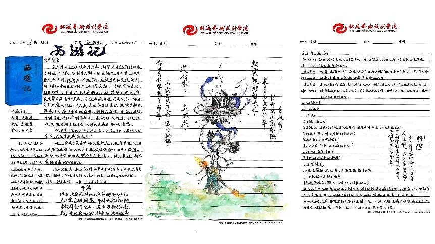 本次大赛已构建起“全员参与、全程用心、全面展示”的特色育人模式,不仅融入文学院课程体系之中,更是传承中华优秀传统文化的重要载体。大赛将艺术思维与创新意识融入经典解读,实现跨学科融合创新。文学院以四大名著读书笔记大赛为抓手,引导学生深入研读经典,传承中华优秀传统文化,形成独立思考的学术品格,培养具有深厚人文底蕴的人才。以下是部分优秀作品展示: