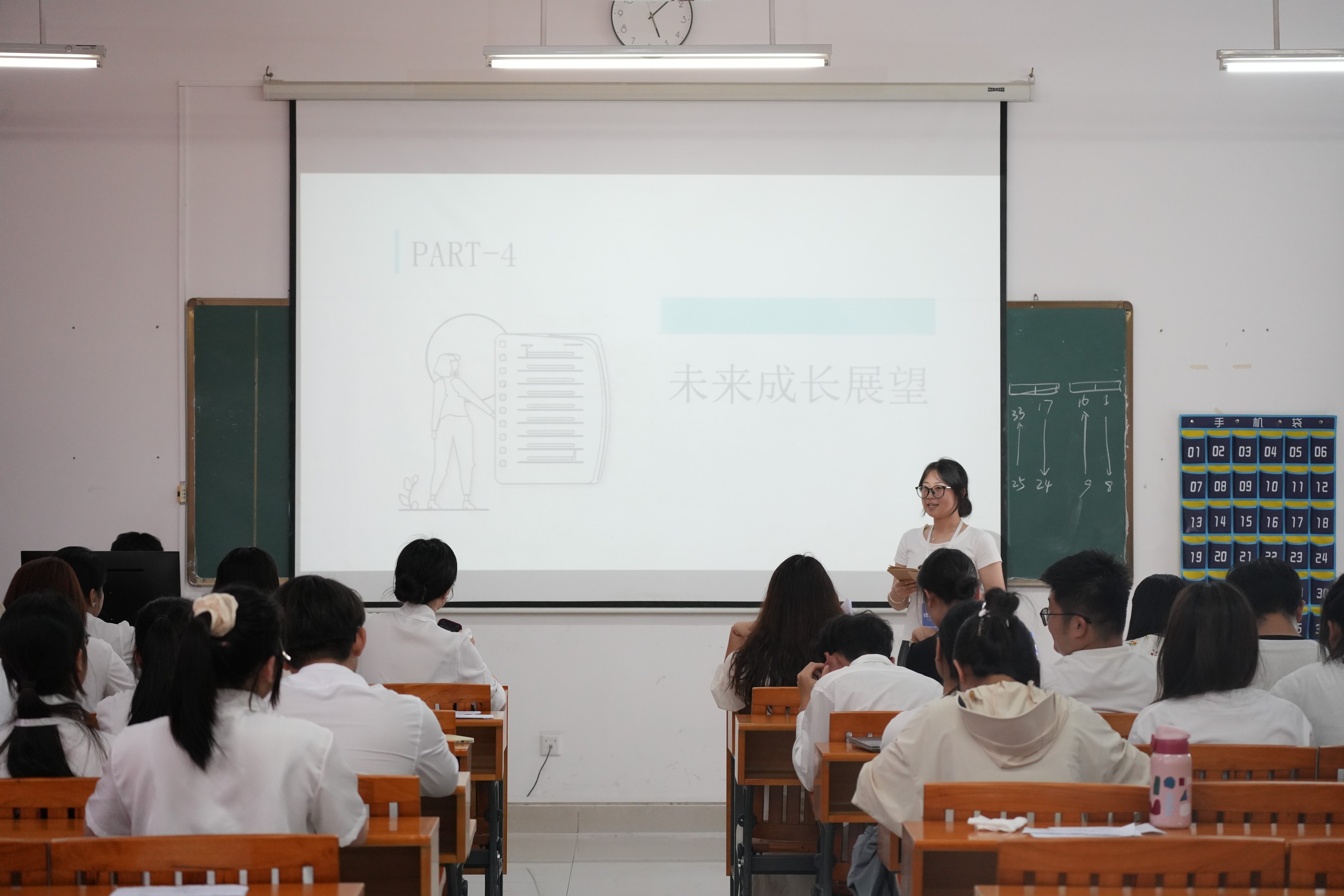 大会第五项议程是团总支指导老师陈美霖总结发言。陈老师肯定了团总支干部们过去一年的工作成绩,感谢大家的付出。同时,她从工作安排、机制建设和人员协作等方面分析了现存问题并指明改进方向。最后,她对未来工作提出建议:建立透明化反馈机制、推行“老带新”模式、强化自身建设、优化工作分配,希望大家认真思考、积极落实,推动团总支工作再上新台阶。