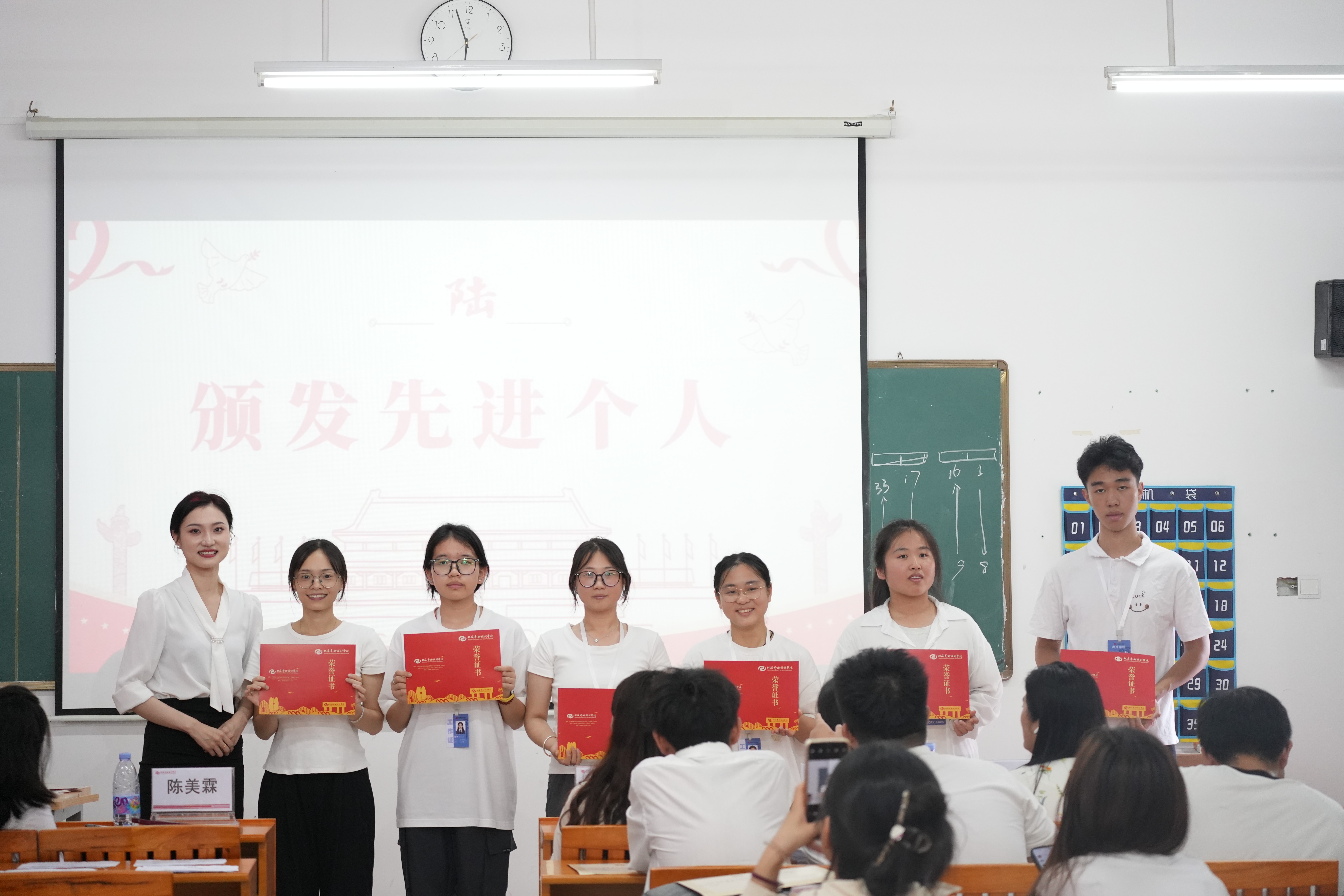 陈美霖老师为先进个人颁发证书