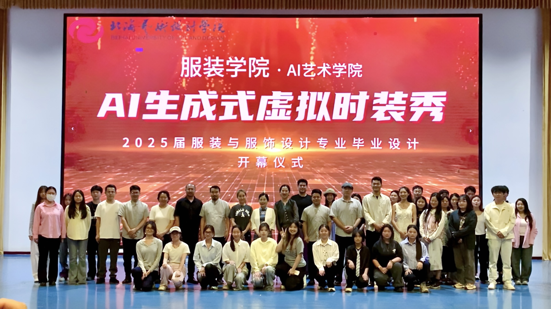 领导嘉宾、教师代表及AI时尚团队合照