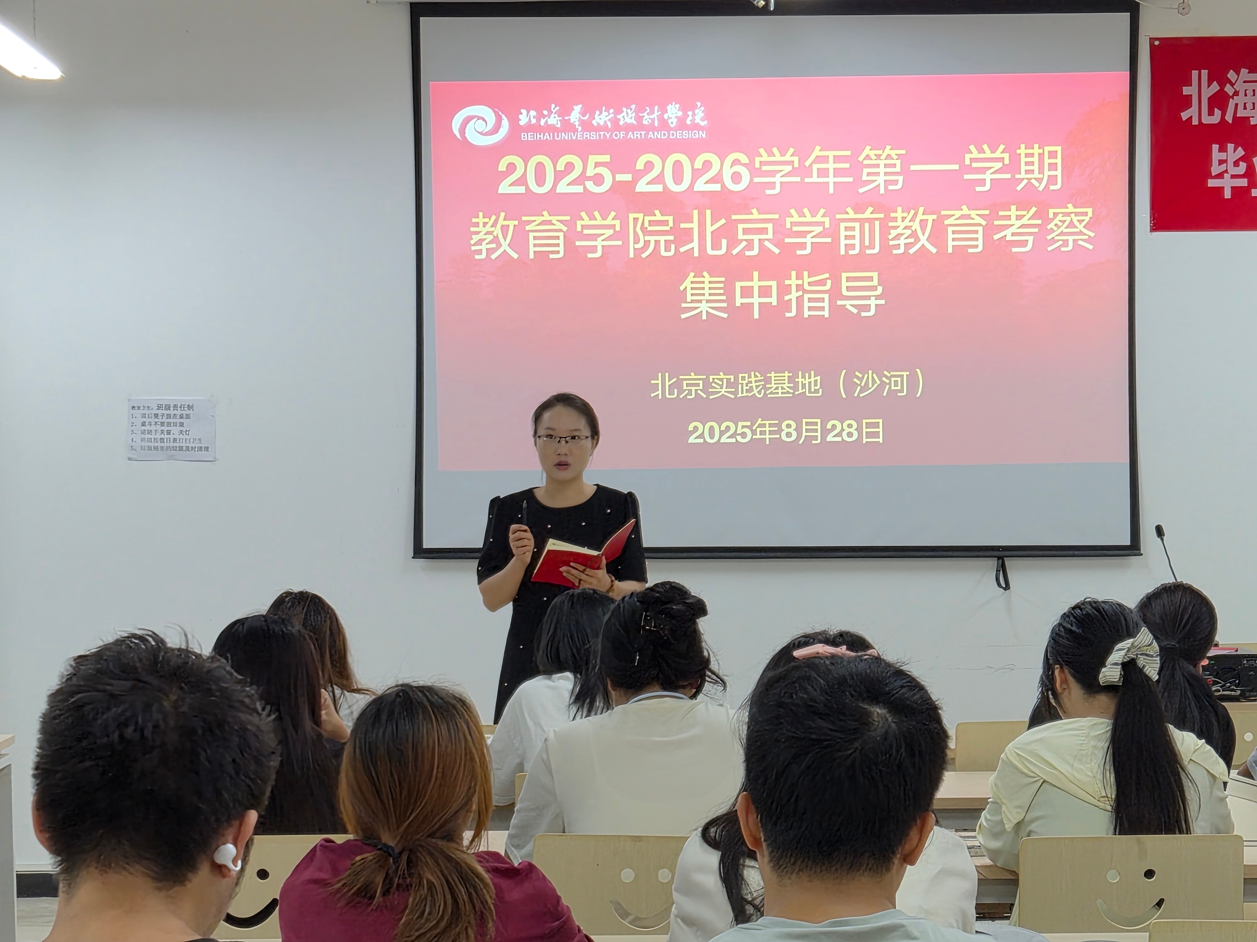 教育学院教学副院长蒙剑英考察前对学生进行集中指导
