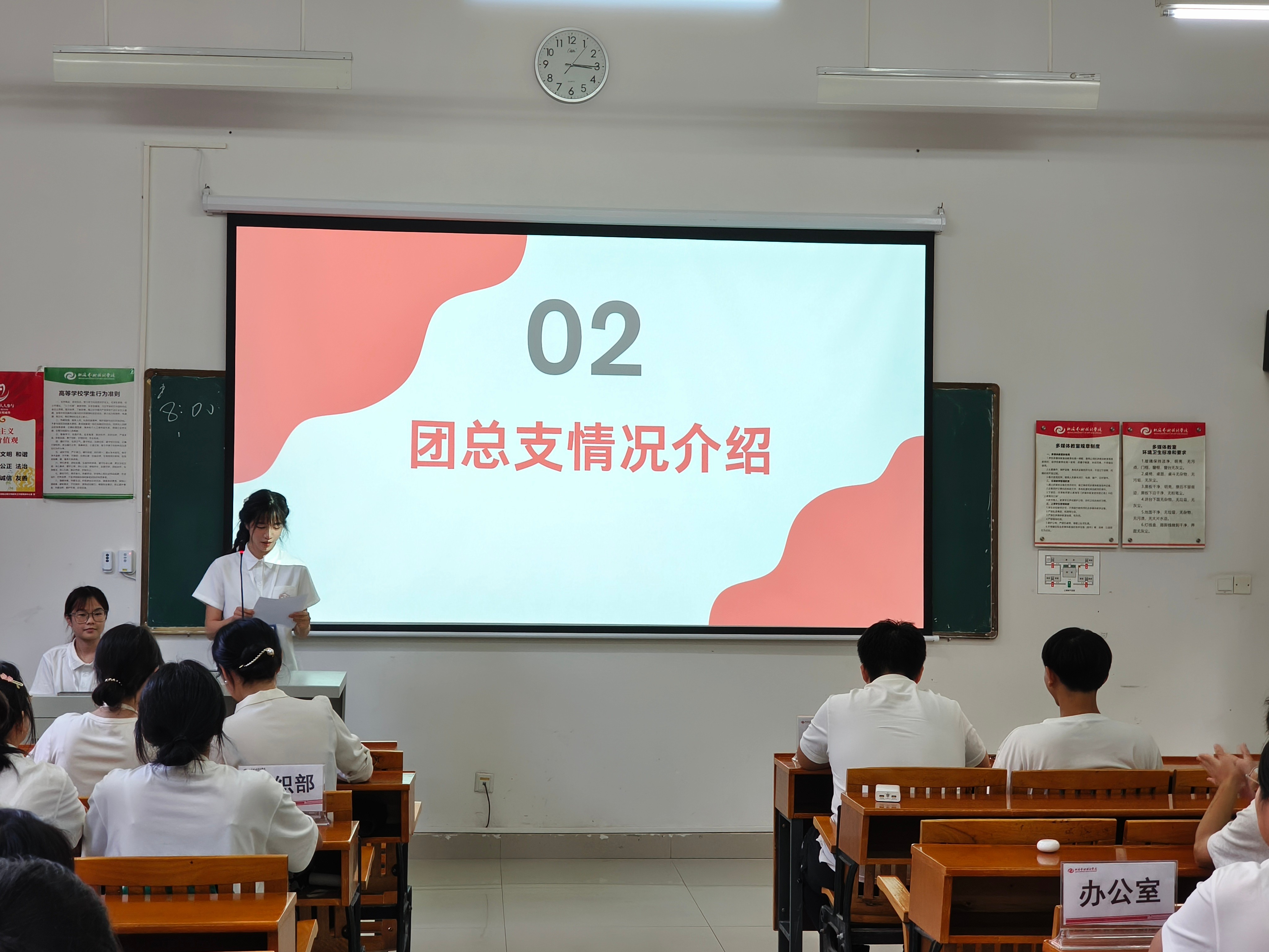 会议第四项议程,由主席团副主席陈杉杉组织团总支规章制度学习教育。通过本次学习教育,团总支明确权责边界、规范工作流程、提升运转效率,保障团务工作有序推进;同时,团总支成员增强规则意识与组织归属感,进一步明确权利义务、养成自律习惯。本次学习教育更能为青年群体营造公平严谨的集体氛围,引导其树立正确价值观,为新时代青年成长提供坚实的制度保障。