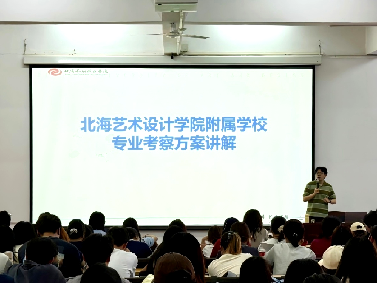 会议对即将启动的专业考察工作进行全面部署。本次专业考察活动将组织学生分北海艺术设计学院附属学校北海市银海区平阳学校开展实地教学观摩与教育见习。会上,北海艺术设计学院附属学校领队教师郭建威、北海市银海区平阳学校领队教师周增懿分别就两个学校见习的考察目标、日程安排、学习任务详细说明指出本次考察将重点围绕小学语文课堂教学观摩、班主任工作见习、校园文化建设调研等内容展开,要求同学们在见习过程中认真观察、详实记录,并结合专业所学进行教学反思,进一步明晰考察目标与学习重点。