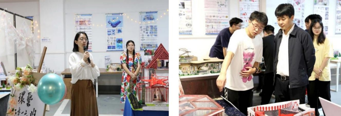 展会伊始,建筑与环境艺术学院副教授石少平对同学们这十二周以来的辛勤付出以及各位领导的参加表示由衷的感谢,并认为同学们在设计制作中的互相配合、互相帮助,充分体现了团结求实的精神,本次活动旨在为社会输送高素质专业人才,提高同学们的职业素养和职业核心能力。