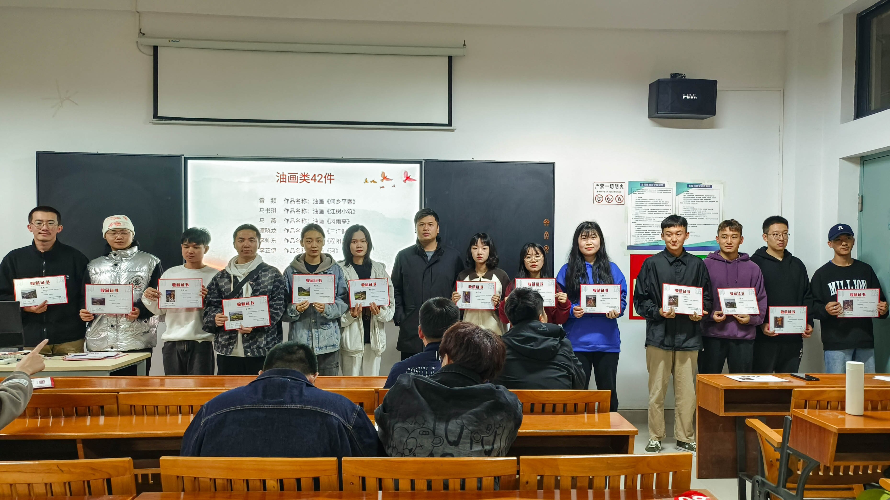 2023330日下午1830,美术学院于艺术楼314举行美术学院探索非遗文化·丹青侗乡风采”美术学院2023年柳州三江专业写生作品收藏颁奖仪式。本次活动出席的嘉宾有北海艺术设计学院美术学院副院长、专业写生系列课程负责人肖玺,北海艺术设计学院美术学院绘画教研室主任张湘中,北海艺术设计学院美术学院实验室主任袁志伟、北海艺术设计学院美术学院美术学教研室主任陈建江,以及美术学院绘画专业部分师生。本次颁奖仪式由肖玺副院长主持。