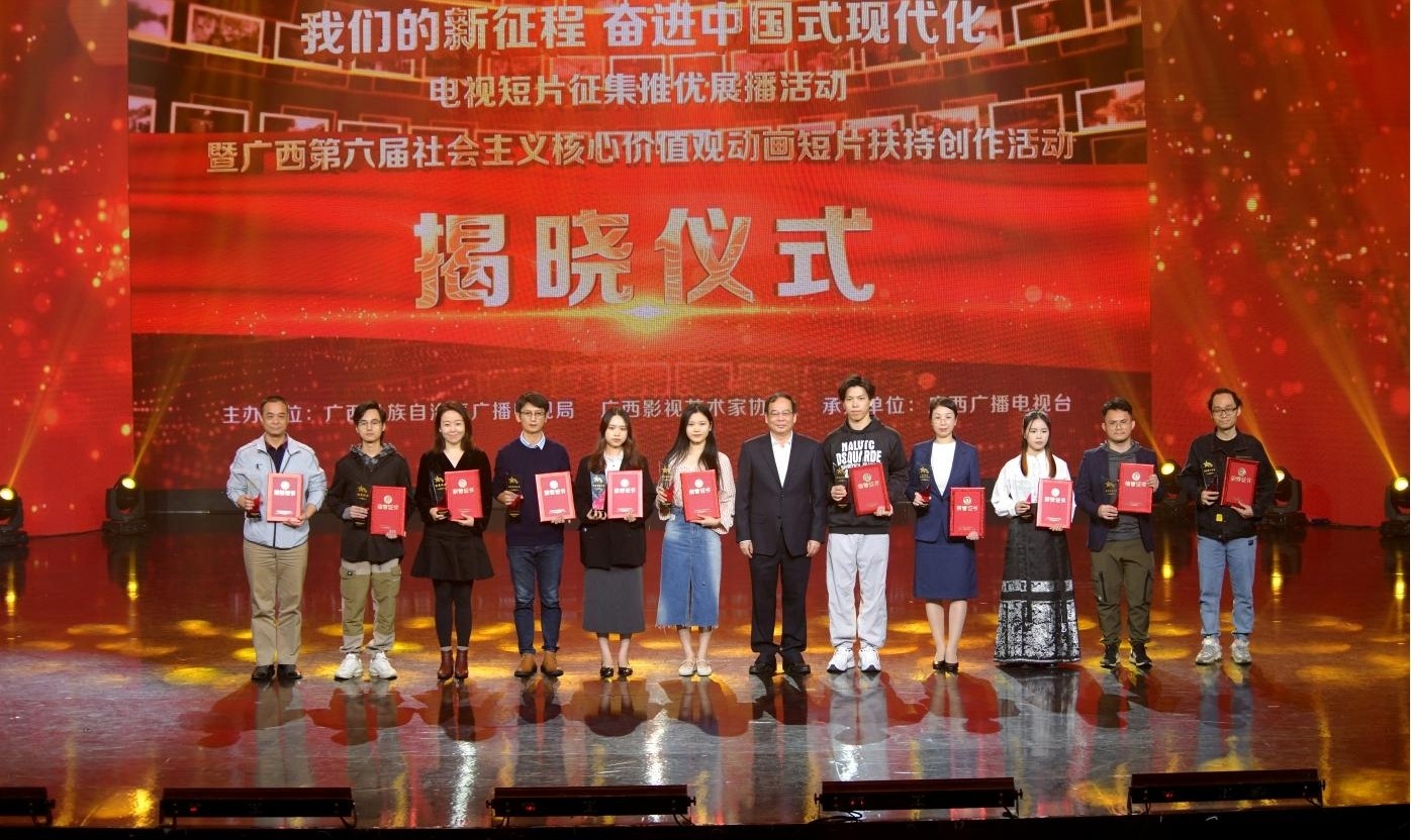 11月23日晚,由广西广播电视局与广西影视艺术家协会联合主办、广西广播电视台承办的“我们的新征程 奋进中国式现代化”电视短片征集推优展播活动暨广西第六届社会主义核心价值观动画短片扶持创作活动揭晓仪式在南宁举行。校动画与传媒学院报送的作品在本次评选中入围作品2获得优秀导演作品1项,我校获优秀组织机构奖动画与传媒学院动画教研室主任吴锡红、动画专业教师周亭、崔兢瑞代表学院出席活动并领奖。