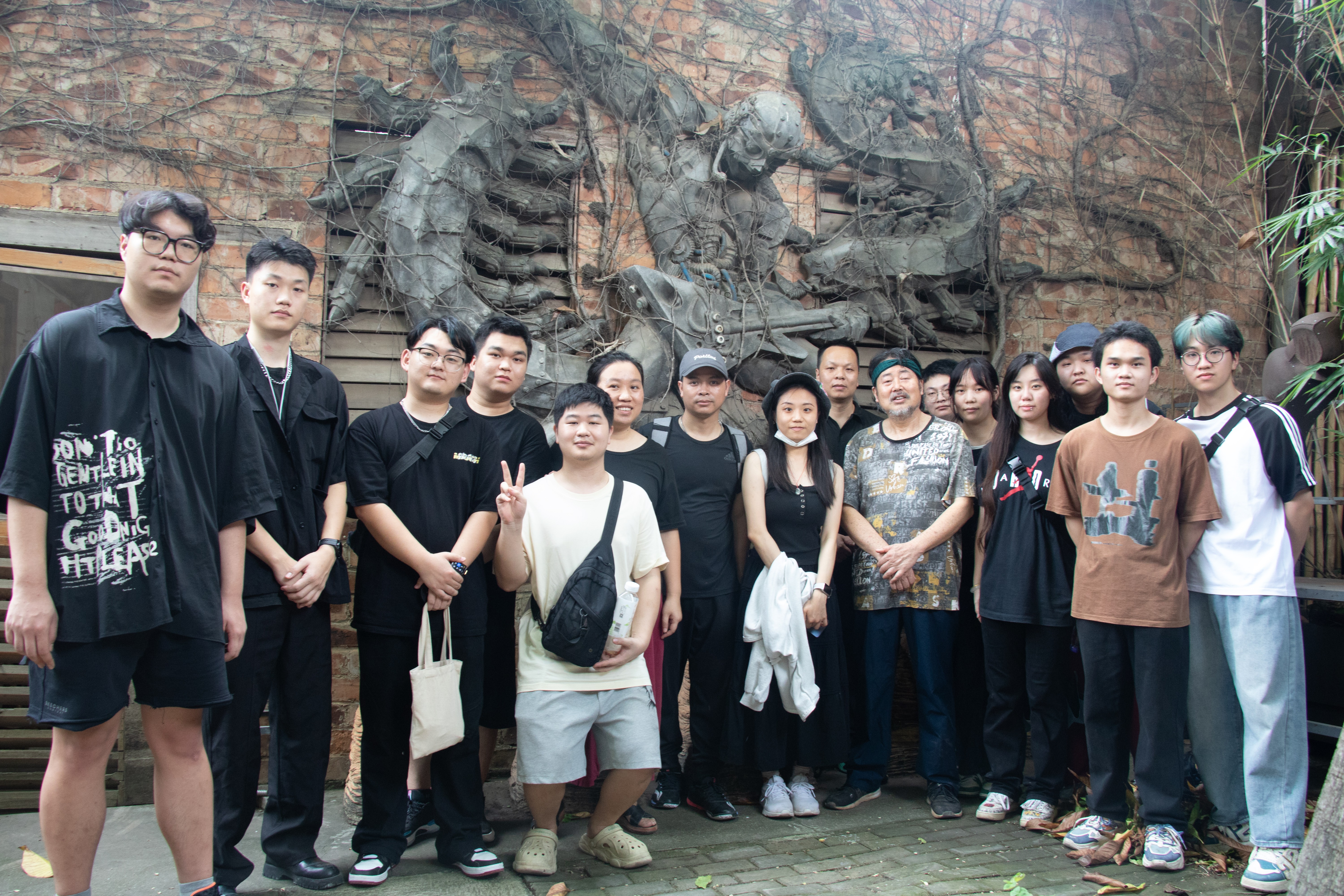 第三站考察广西艺术学院著名雕塑家何镇海教授的雕塑艺术工作室,让学生领略艺术家工作室的艺术氛围与风采,对名家雕塑作品的欣赏,并加深学习与探讨。何教授给同学们分享了自己的“门窗”传统艺术符号再创作的个人艺术创作了历程,为同学们拓宽艺术创作的思路,及寻找个人艺术风格及语言的重要性。本次艺术之旅同时也划上圆满的句号。(欧安佳 摄)