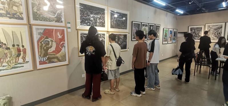 此行的第二站是参观广西艺术学院插画版画24届本科毕业展,以及对广西艺术学院本科雕塑专业教学情况的考察,借此对广西高校雕塑具象写实专业教学现状进行充分了解。在广西艺术学院雕塑系的教室里,覃教授与同学们面对面分享教学心得、探讨艺术具象雕塑创作的思路,并与我院雕塑专业的老师深入交流。