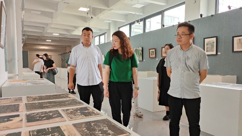 美术学院龚为副院长、美术学院党总支鲁明阳副书记以及美术学院多位核心行政管理部门负责人的陪同下,阿萨卡数字科技有限公司一行参观了艺德楼的多项展览。展览集中展示了学院师生的艺术创作和设计作品,充分展现了学院在艺术设计教育领域的深厚底蕴和创新精神。