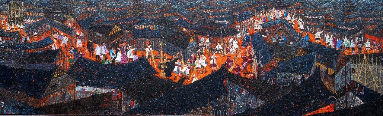 刘栋 《侗族清韵》 70cm×230cm  布面油画