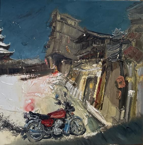 本次展览的核心主题是侗族建筑,力图通过绘画这一形式探讨侗族建筑的文化价值、空间符号与情感表达。展览以当代侗族建筑形式为灵感,结合现象学理论与表现主义的艺术手法,将侗族建筑的结构、形式、象征性以及人类生活的内在联系巧妙呈现。作品中的侗族建筑不仅是作为空间存在,而是作为情感的载体,承载着文化记忆与民族精神。
