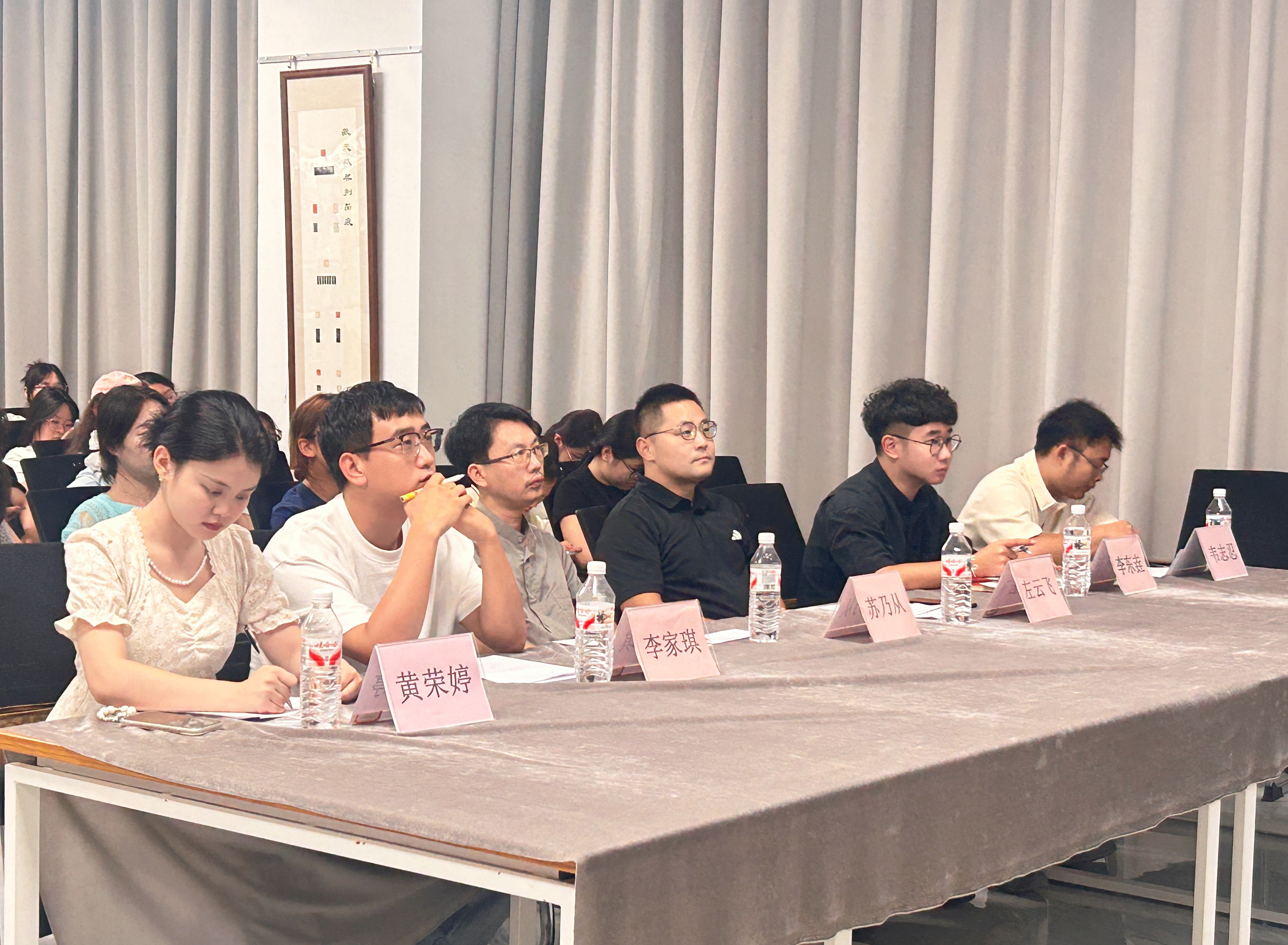 为加大国家通用语言文字推广力度,促进铸牢中华民族共同体意识,书法学院于9月19日至26日组织开展推普活动,并于9月27日在南校区艺德楼507书法教研室举办“笔墨传规范·书香促推普”宿舍规范汉字书写比赛暨推普成果展示活动。学院常务副院长苏乃从、党支部副书记左云飞,以及副院长李东垚、李家琪、黄荣婷、韦志忍共同出席并担任评审。