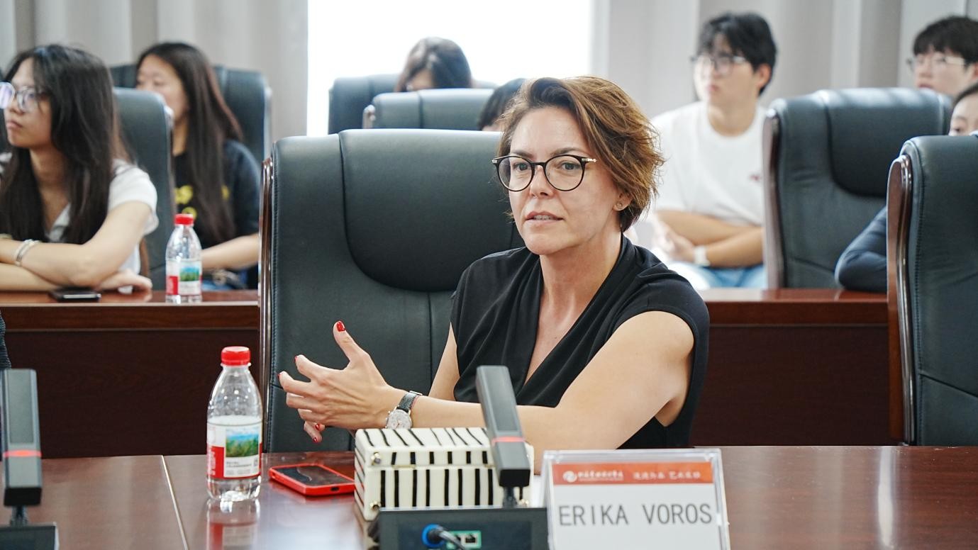 佩奇大学教师代表金鑫副教授作“‘共创’建筑设计高等教育4.0时代”主题分享。以“共创-历程-挑战”为引,诠释建筑设计教育发展历程与未来趋势,并聚焦高校在建筑设计领域的引领使命,结合行业发展需求,从教育目标、课程体系、教学方法等方面提出了教育教学调整的路径。随后,介绍联合培养项目,并回顾了双方合作历程。与阿科斯教授、艾瑞卡副教授共同分享了合作历程中关于建筑设计、产品设计等联合课程建设,教师访学与学生留学等方面的合作交流经验,为师生深入了解国际交流与学科发展提供了清晰视角。