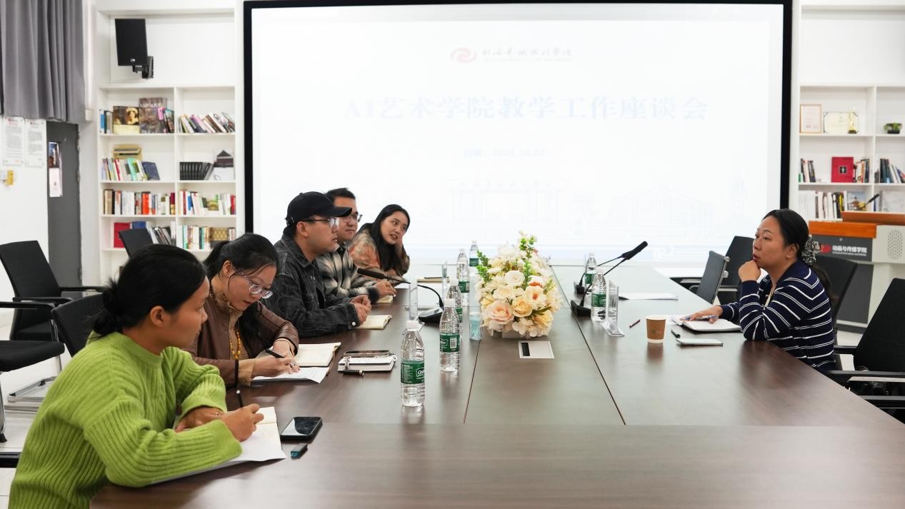 2025年10月22日下午,教务处副处长吕雅婷走进AI艺术学院,与学院教师在综合楼四楼演播厅开展本学期教学工作座谈会。AI艺术学院党支部书记芦庆芳、院长顾伟光、副院长李剑阁以及各部门主任、骨干教师代表参加会议。座谈会围绕“艺术与科技专业课程体系建设与未来发展方向”主题展开深入研讨,并就学生当前的学习现状进行了交流与分析。