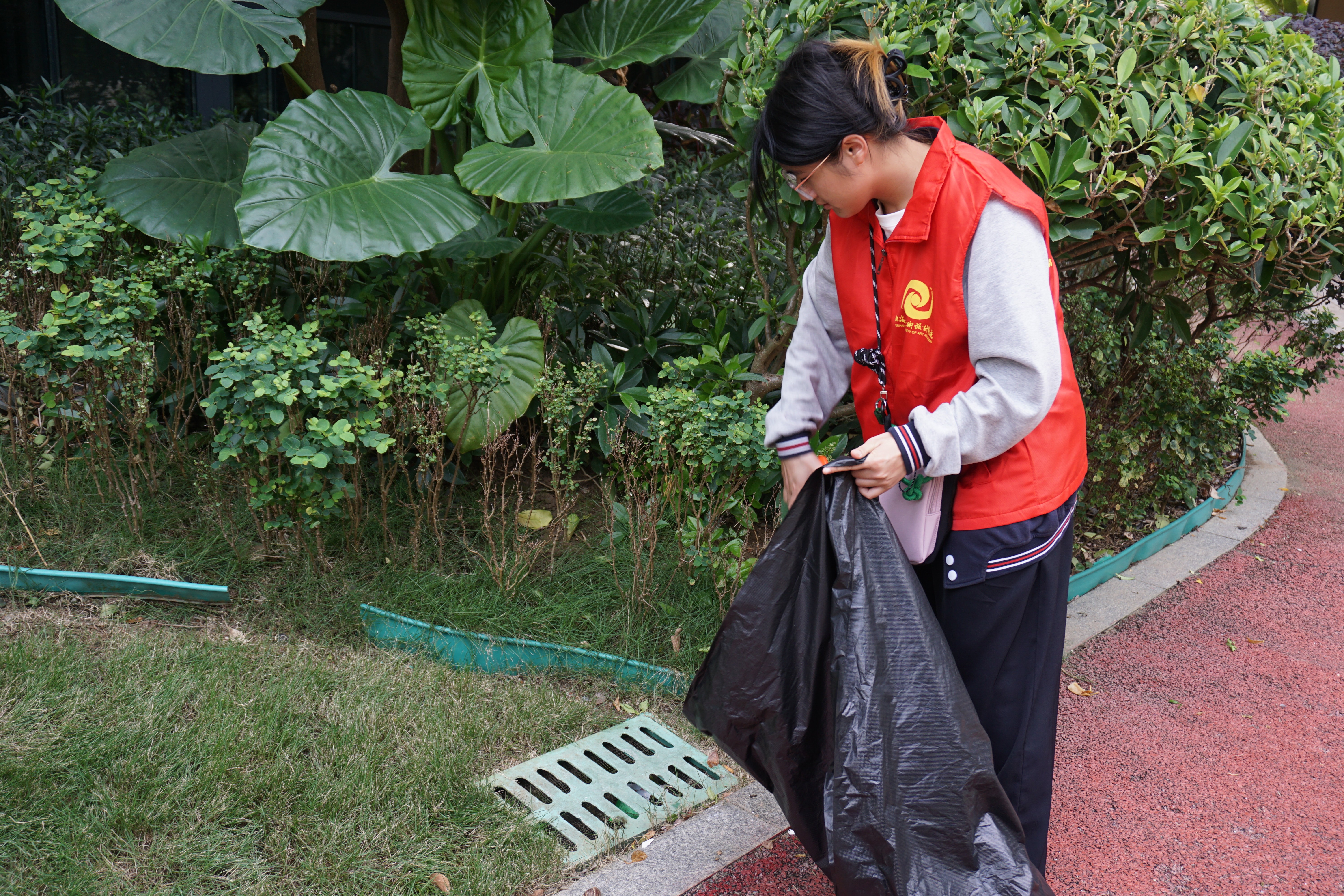 活动伊始,志愿者们化身为“清洁卫士”,投入到热火朝天的社区卫生清洁中。同学们手持清洁工具,分工协作,默契配合。他们细致地清理绿化带中的隐藏垃圾,认真擦拭公共宣传栏与健身器材,并将散落在步道上的杂物拾起。汗水挥洒处,社区焕新颜。志愿者们忙碌的红色身影与秋日的金色阳光交相辉映,构成了社区里最活力的图景。他们的劳动不仅美化了社区的物理环境,更用实际行动向居民传递了“社区是我家,清洁靠大家”的环保理念。