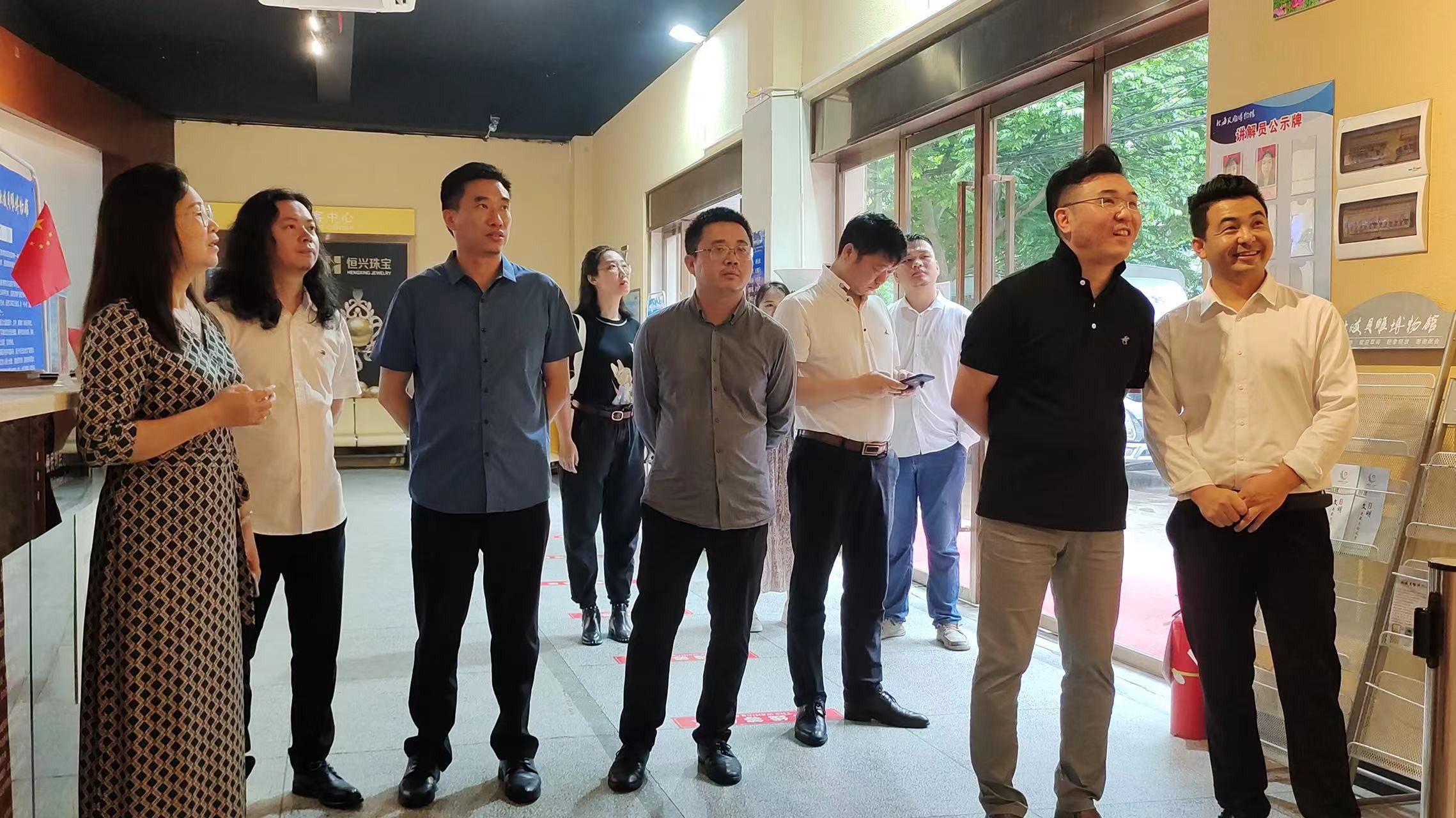 10日上午11时,在北海市恒兴珠宝有限责任公司、合浦金蝠角雕有限责任公司的走访调研中,校企双方针对项目教学、横向课题、实习就业、雕塑课程设备问题展开交流探讨,对两家企业在产学研、实验室、工作生活条件等方面进行实地考察。校企双方均在鼓励学生作品参与培训机构,以期共同成长;推动贝雕、角雕非遗物质文化的普及发展;以及实习实训等方面达成一致意见,并希望进一步推进合作。 (肖玺 摄)