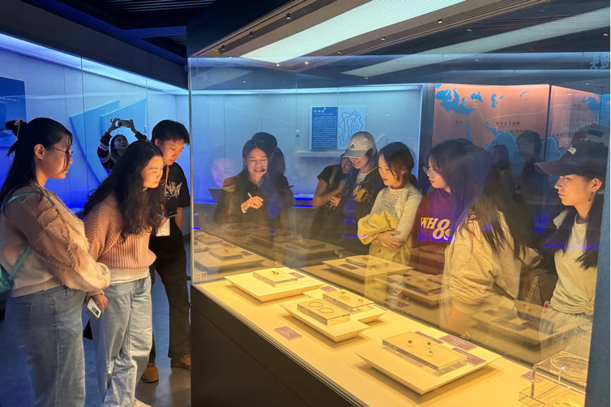 此次合浦汉墓文化博物馆的专业考察活动,不仅是一次对历史文化的深入探寻,更是同学们将理论知识与实践相结合的重要契机。它拓宽了同学们的设计视野,激发了他们的创作灵感,为未来的专业学习和设计实践奠定了坚实的基础。相信在这次考察的启发下,2024 级服装与服饰设计专业的同学们定能在服饰设计的道路上绽放出属于自己的光彩,创造出更多富有文化内涵与时代特色的优秀作品。(陈琛/摄)