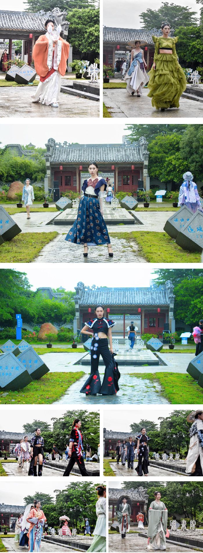 随着音乐的转换,时尚潮流与传统文化发生碰撞,学生作品打破常规、无拘无束,体现了国潮的时尚态度、海洋的多元奔放、疍家的传统文化和少数民族的别样风情,给北海市园博园增添了特殊的一抹景色。
