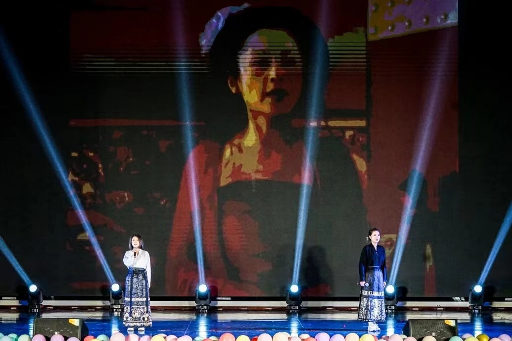 “发光的不是我,是传承千年的马面裙。”《大明宫词》慷慨激情的词朗诵,奏响了传承千年的中华优秀传统文化,从台下行进至舞台上,让现场观众带来一种沉浸其中无法自拔。