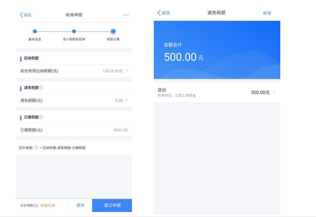 如您有减免税事项,可以点击【减免税额】新增相关信 息。确认结果后,点击【提交申报】。