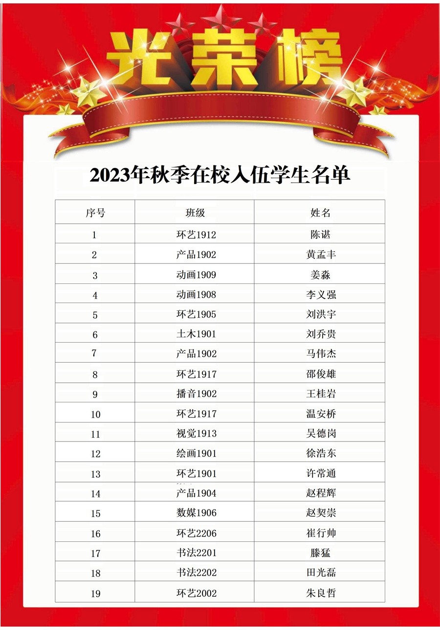 祝愿入伍的同学们在军队中能够成长为杰出的优秀军人,为国家的繁荣富强贡献自己的力量,也欢迎更多同学参军入伍,报效祖国。