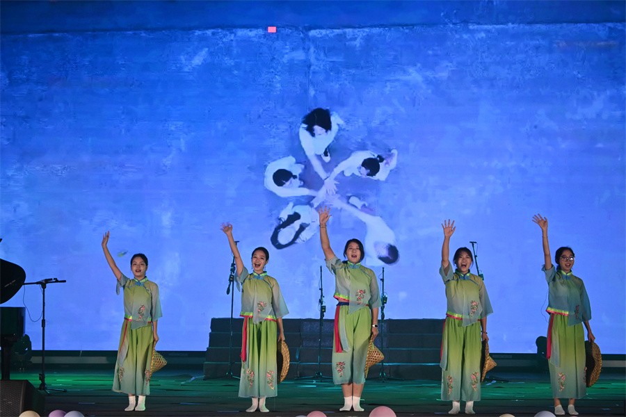 第二篇章“声乐作品”《让我留在你身边》《灿若星辰的目光》《迟到的正义》《心脏》四首曲目是艺术教育专业在声乐基础、声乐训练、教学歌曲演唱等课程中积累的丰硕成果体现。演唱师生扎实的唱功,动人的旋律引领现场观众沉浸音乐魅力。