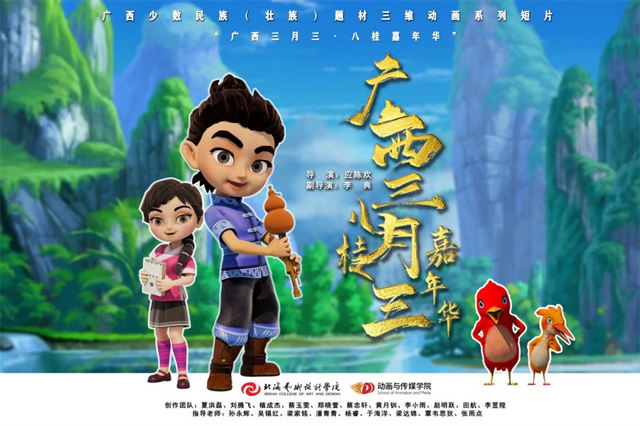 春风拂绿壮乡时,山歌绣球满城飞。在广西传统节日“三月三”来临之际,北海艺术设计学院动画与传媒学院大四学生毕业小组团队倾力打造的原创三维动画短片《勇敢的阿牛哥》首发预告。正片将于4月20日全网上线,这部以壮族“三月三”为背景的动画,既是对非遗文化的创新表达,也是动画与传媒学院立足本土、服务文化的生动实践。