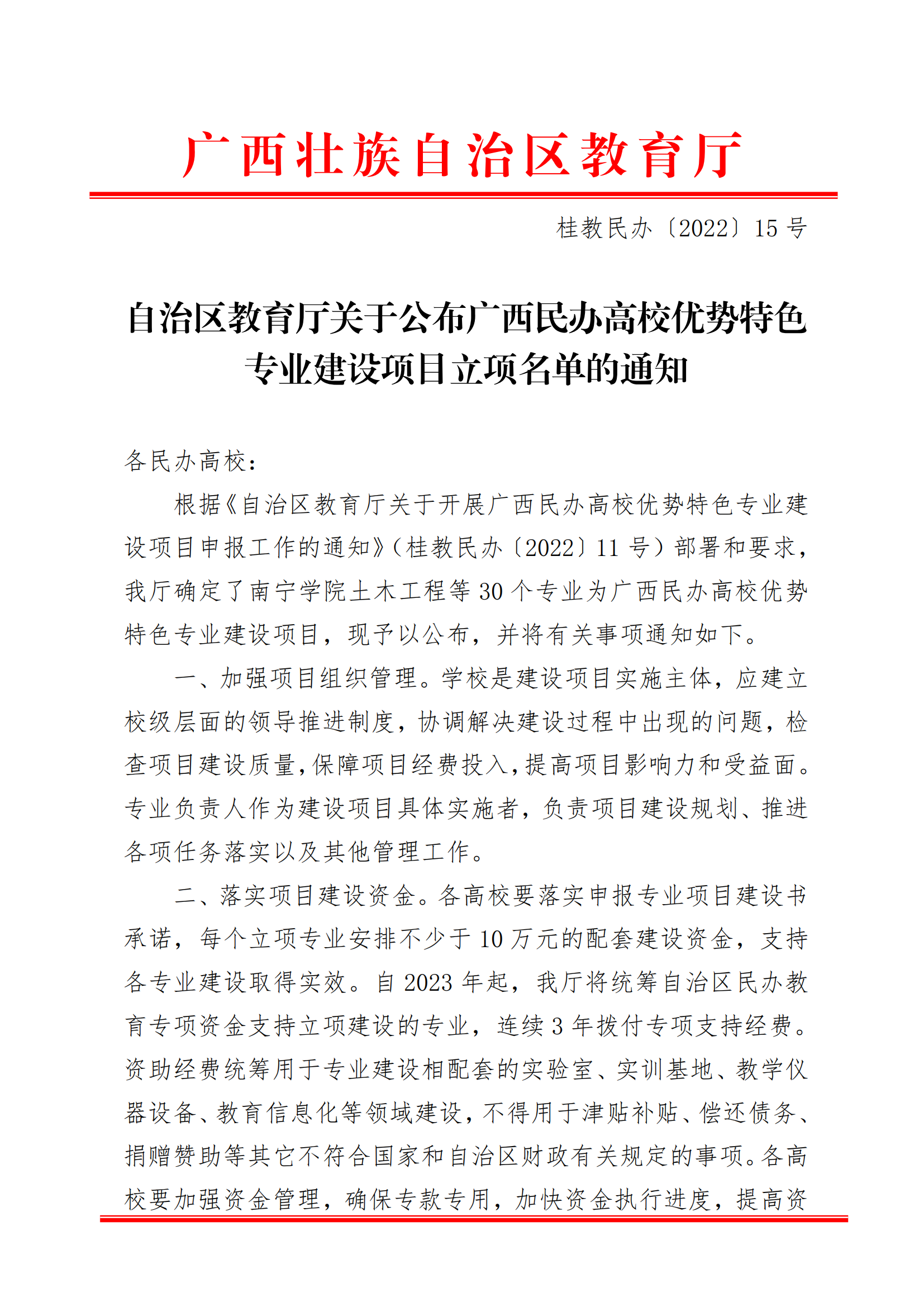 附件:桂教民办〔2022〕15号自治区教育厅关于公布广西民办高校优势特色专业建设项目立项名单的通知