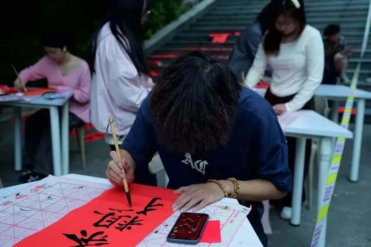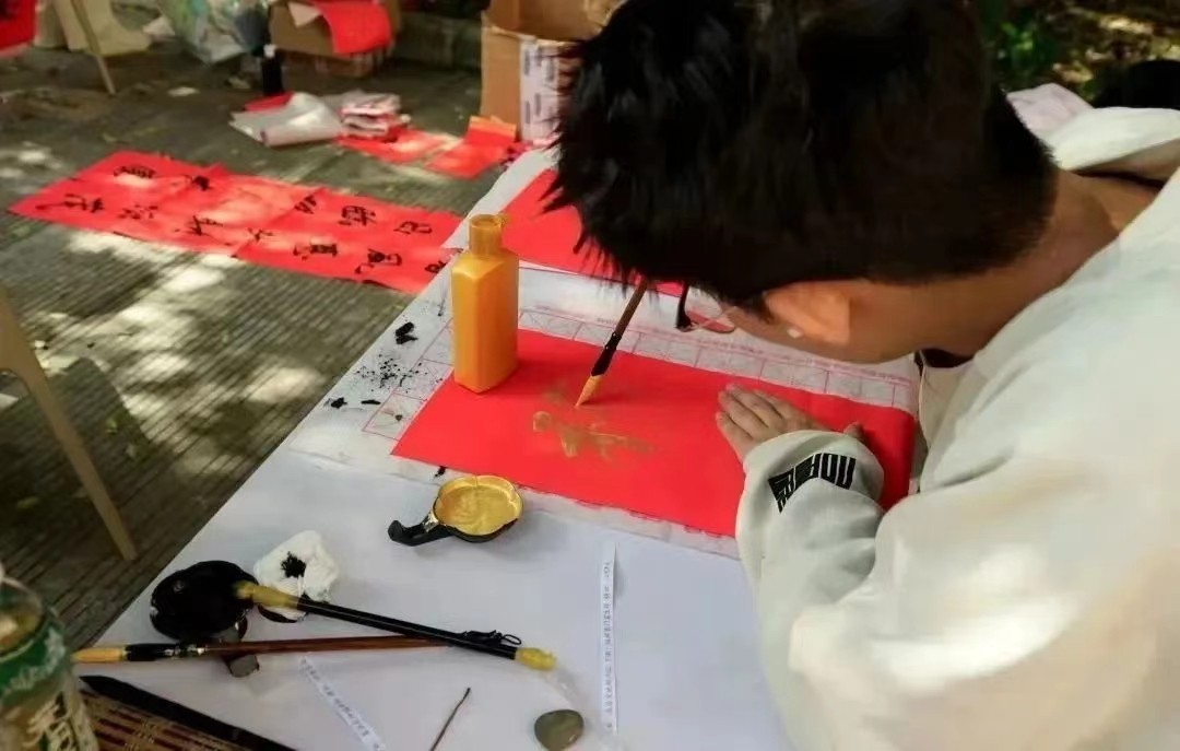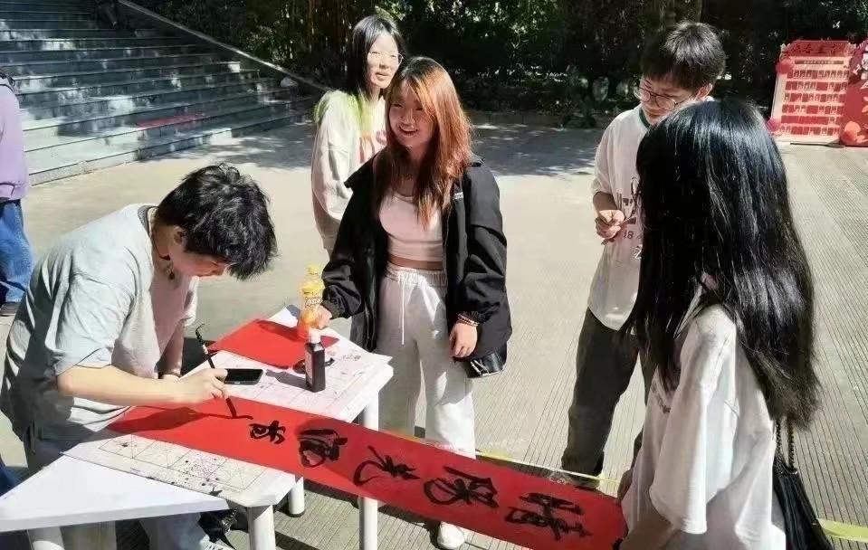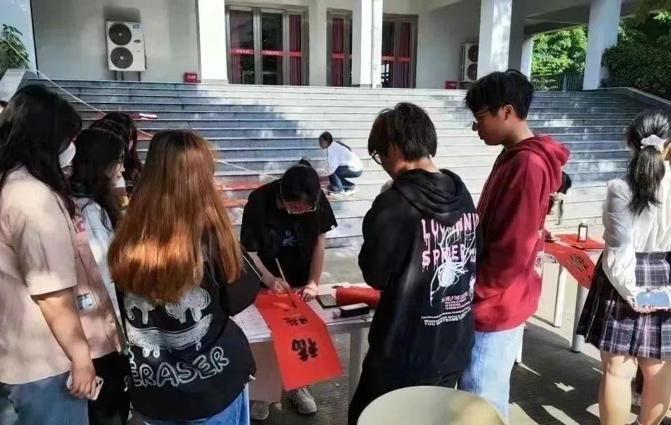1月5日至7日,由校团委主办,新媒体宣传部、书法协会承办的送春联活动于伦理楼107教室门前开展。