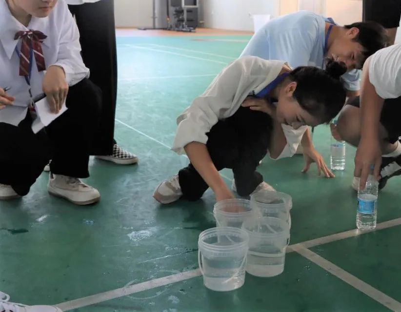 游戏开始后,每队必须围绕起点的灭火器弯腰低头转3圈,然后用杯子装水,绕过障碍物,跑向终点,将水倒入桶中,回答工作人员提出的问题,答对立刻返回,交给队伍下一人接力。游戏四开心抢答: