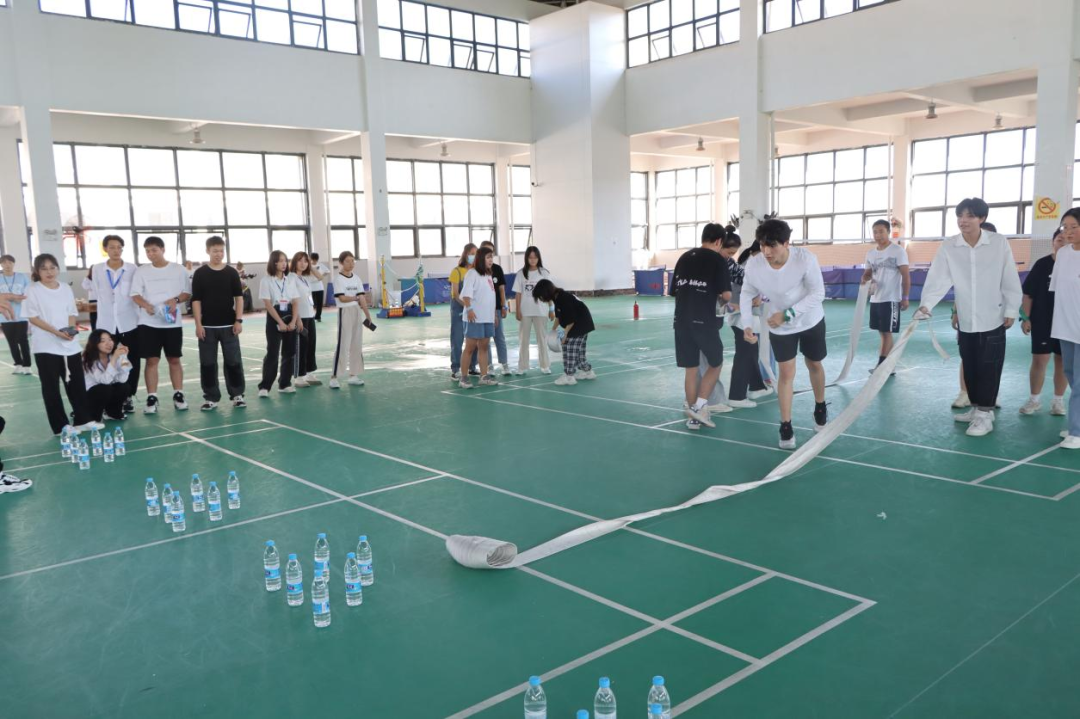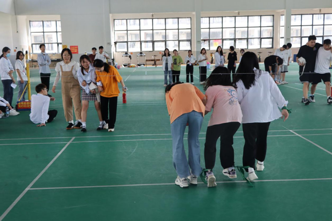每队的两人将腿绑在一起,一人拿灭火器,一人拿消防水带,两人配合走到终点回答问题,答对后回到起点交给队友交接。最后游戏结束,由工作人员统计各队得分,再交给主持人进行评比,在此感谢各位工作人员和同学们的支持与配合,保证了此次活动的顺利举行。